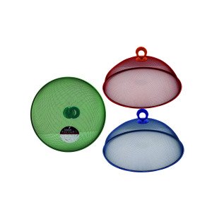 Perfect for keeping food items safe from bugs and debris while dining outside, this Mesh Food Cover is great to have on hand during camping or picnic trips, and is also convenient for home use. Cover is made of metal mesh with a durable plastic top handle. Comes in assorted colors. Measures approximately 11" in diameter x 4.5" tall. Comes packaged with a hang tag.,Metal Mesh Food Cover,Tapa Comida