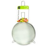 One of the most versatile tools in the kitchen, this 6" Metal Strainer is an ideal size for many kitchen jobs. Great for washing vegetables and fruits, this strainer can also be used for straining sauces or gravies. Use it to sift dry ingredients for baking together or for getting lumps out of powdered sugar. Clean up is easy; this strainer is dishwasher safe. Comes packaged with a wrap around.,Small Metal Strainer,Colador De Metal