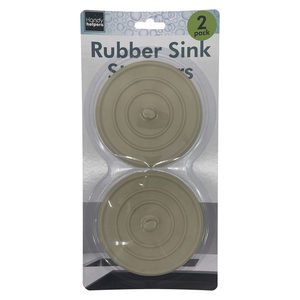 Great for kitchens and bathrooms, this 2-piece flexible Rubber Sink stopper set creates a self-sealing base thanks to a suction grip. Convenient design features a raised center for easy removal. Fits most standard sinks and shower drains. Drain stoppers measure approximately 4 2/5" in diameter. Are packaged in a blister pack. The Package measures approximately 5.5" x 11.25".,Rubber Sink Stoppers,Tapon Para Drenaje 2Pzas