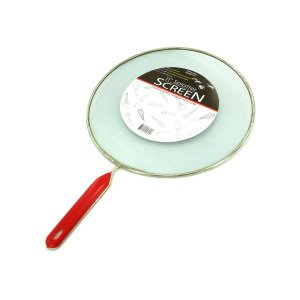 Ideal for protecting yourself and your kitchen from grease and splashes, this Splatter Screen allows you to cook bacon and more without worrying about the mess. It can also be used for draining pots and pans. Made from high quality plated iron. Screen area is approximately 11" in diameter. Comes in assorted colors. Comes packaged in a poly bag.,Splatter Screen,Anti-Salpicador 11"