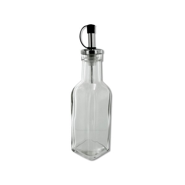 Ideal for keeping oil and vinegar stored with style, this Oil & Vinegar Cruet features a glass bottle with a top that allow for a slow release of liquids and a plastic cap for freshness. Bottle holds approximately 6.8 oz./200 ml and measures approximately 7.625" tall with spout included. Comes loose.,6.8 oz. Oil & Vinegar Cruet,Vinagrera