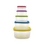 Seal in freshness with this space-saving 20-piece Variety Pack Food Storage Containers Set. Pack snacks, fruit, lunches and much more in these colorful nesting containers. Includes: (2) 8-cup containers, (2) 4-cup containers, (2) 2-cup containers, (2) 1-1/3-cup containers and (2) 1-cup containers. Microwave, freezer and dishwasher safe. Comes packaged in a shrink wrapped hanging box. Package measures approximately 14" x 7.25" x 3.5".,20-Piece Variety Pack Food Storage Containers Set,